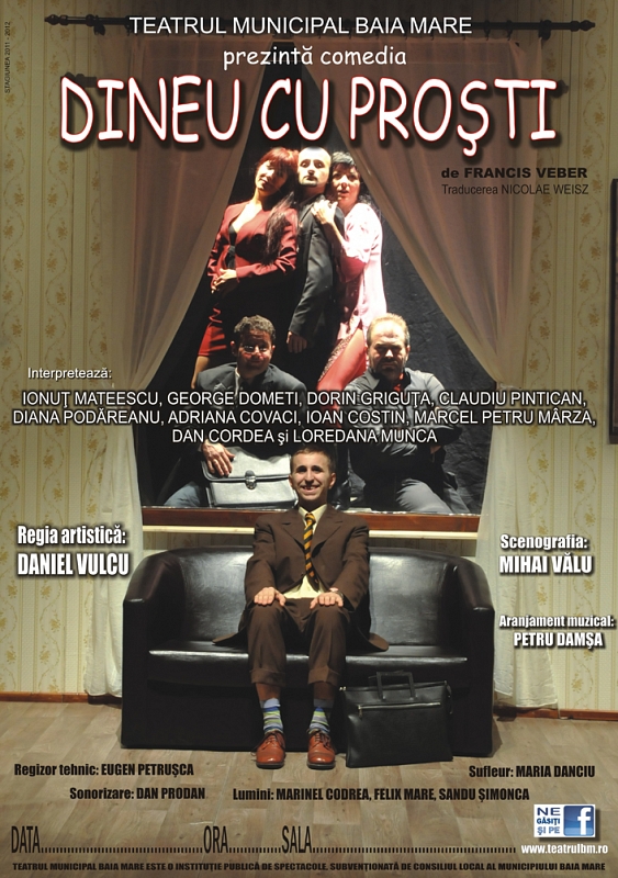 Aseară am fost la teatru să mă întîlnesc cu niște proști. E vorba bineînțeles de piesa Dineu cu proști după Francis Veber care s-a jucat aseară la Teatrul Municipal Baia Mare. Subiectul vă este probabil cunoscut pentru că a fost transpus în 1999 într-un film de mare succes.