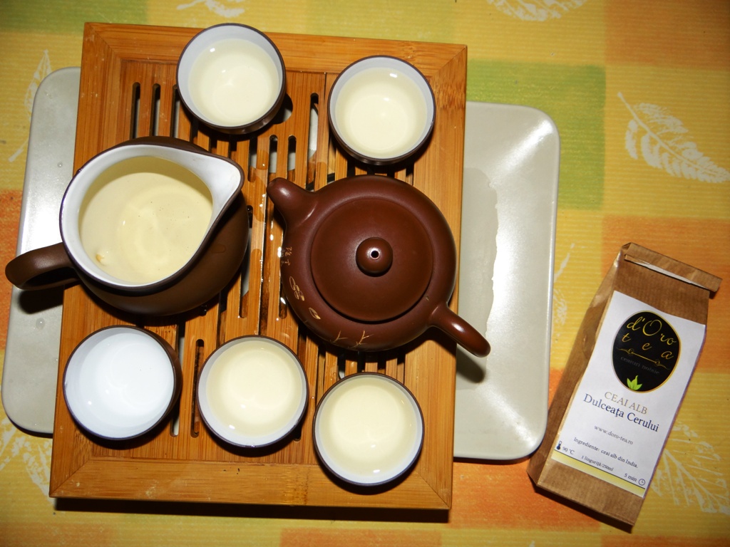 Vineri am început în forța şi am degustat un ceai alb chinezesc. Era culmea ca tocmai omul alb să nu fi încercat un ceai de aceeași culoare. Prin urmare am scos de la păstrare setul de ceai primit de la strămoși și am preparat Dulceața Cerului așa cum se cade la chinezi.