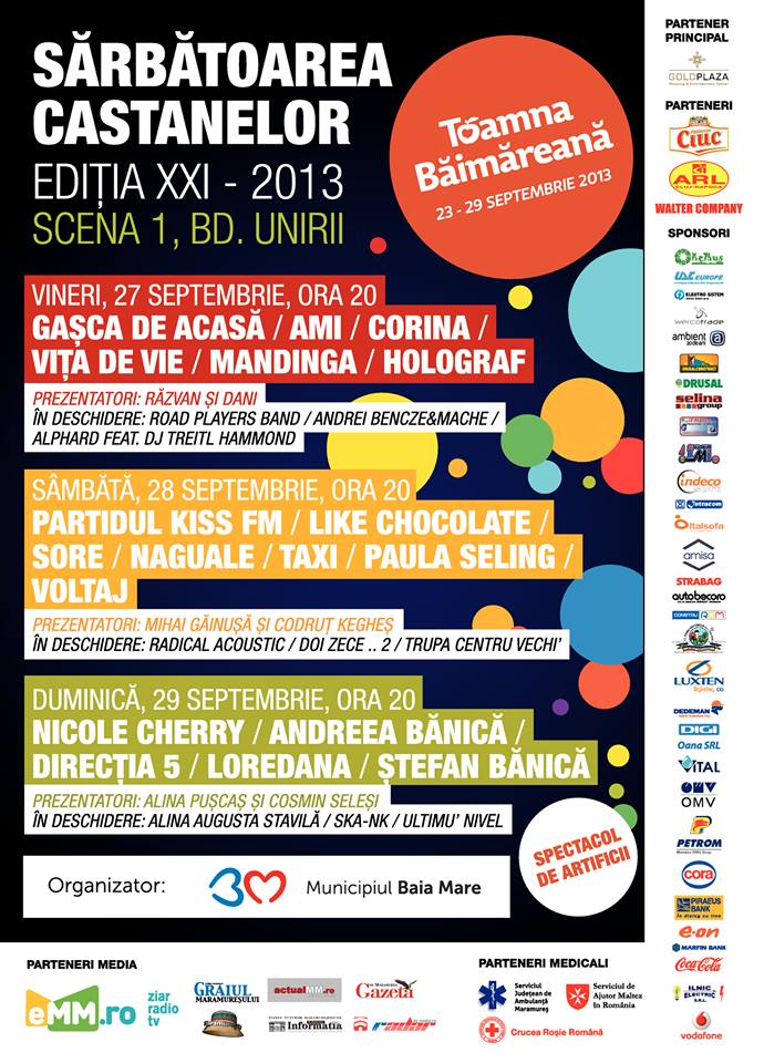 Ultima săptămînă de septembrie este una deosebită în Baia Mare. De 21 de ani băimărenii celebrează în această perioadă Sărbătoarea Castanelor. Da, Baia Mare este unul din puținele locuri din Europa în care cresc castane comestibile (mă să fie, 4 cuvinte ce încep cu aceeași literă – o fi fiind ceva figură de stil).